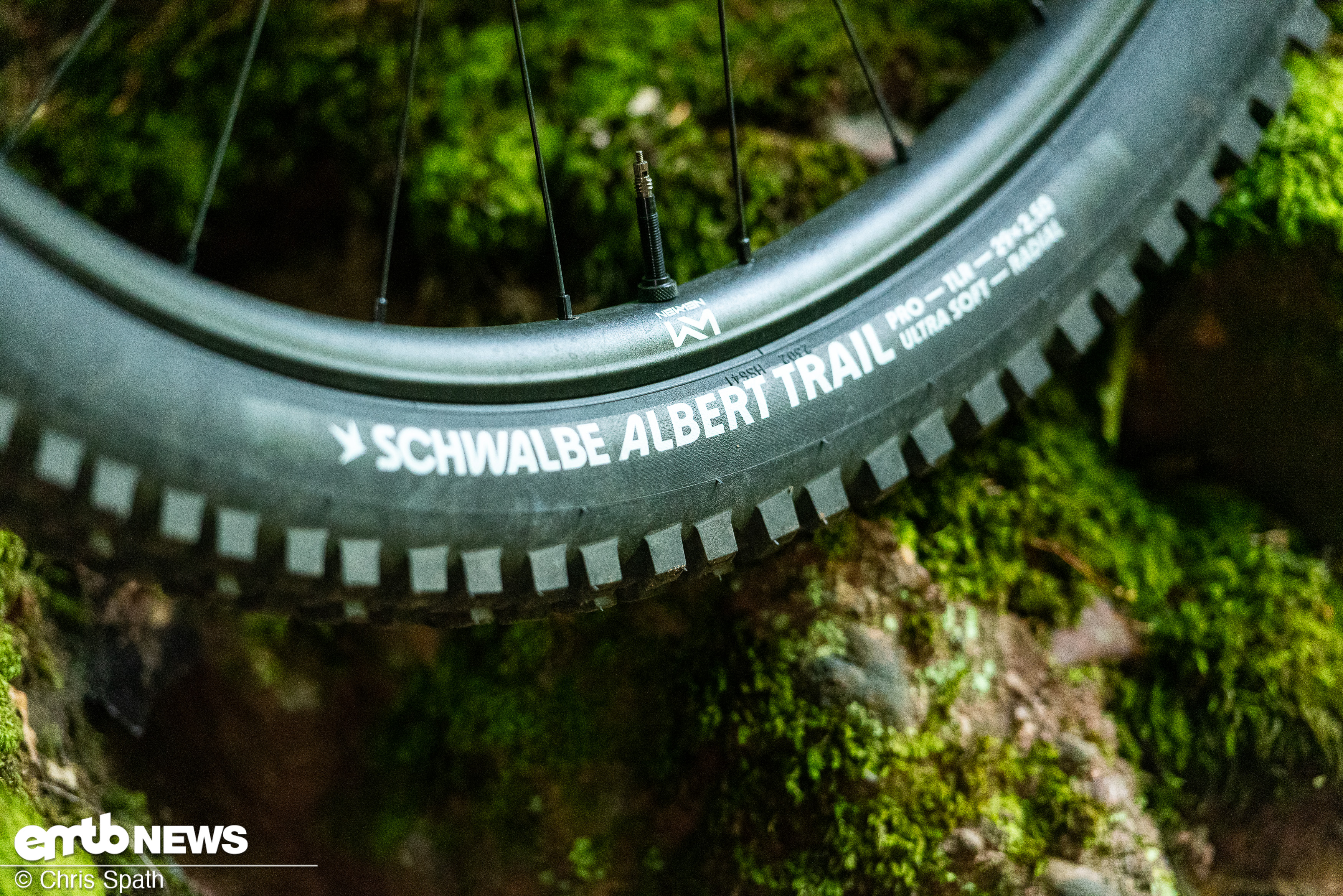 Schwalbe Albert Reifen stellen den Bodenkontakt her – vorne Trail/Ultra Soft, hinten Gravity/Soft.