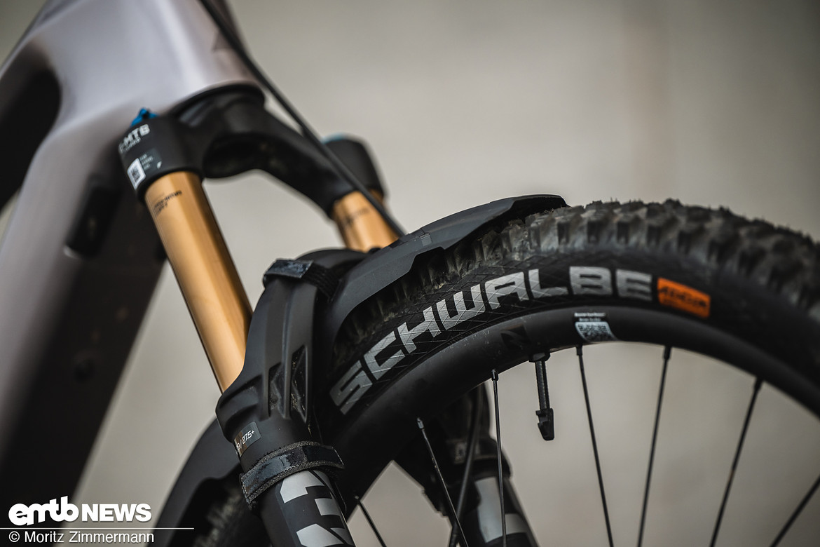 Der Kettenstrebenschutz ist formschlüssig an die Kettenstrebe angelegt.