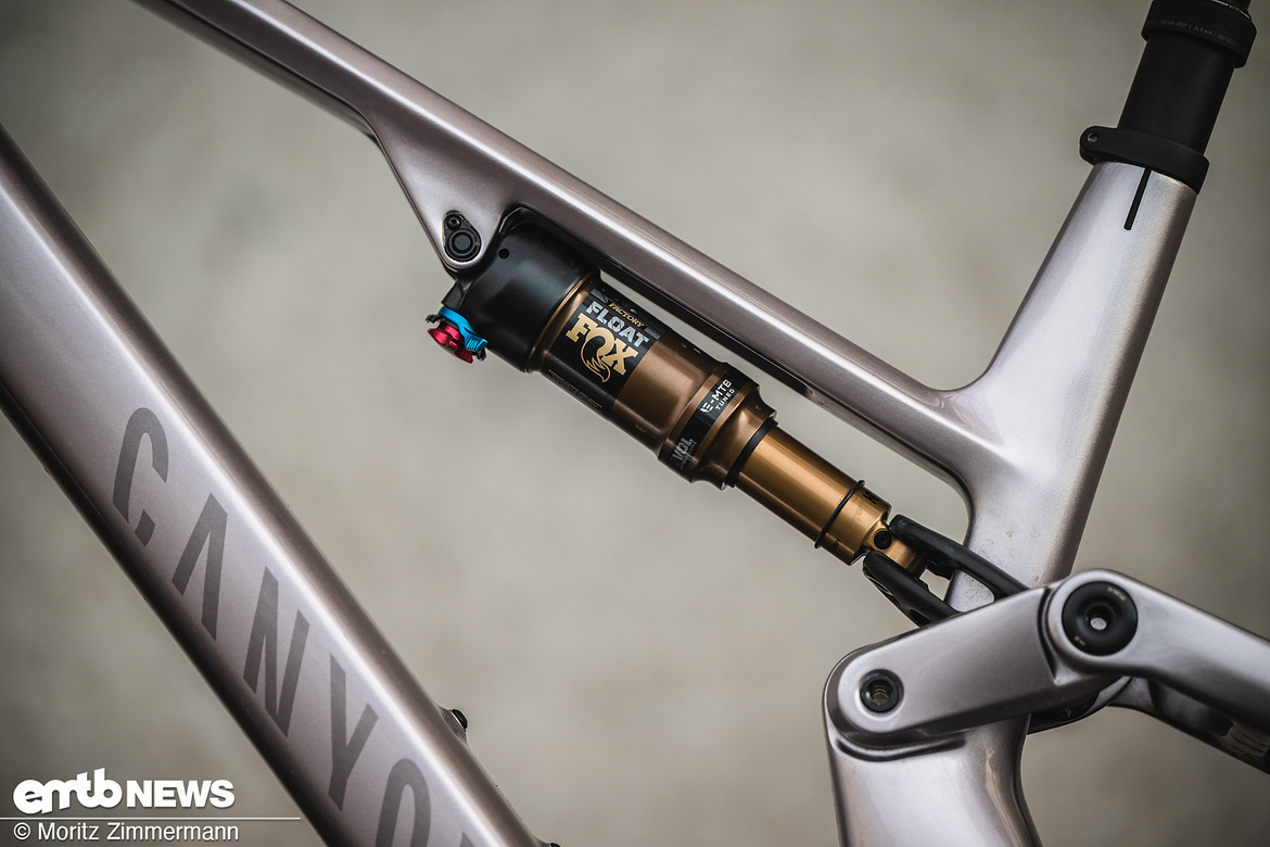 Der Dämpfer wird über eine Dämpferverlängerung betätigt. im Album Vergleichstest Light-Support-E-MTB mit Bosch-SX – Canyon