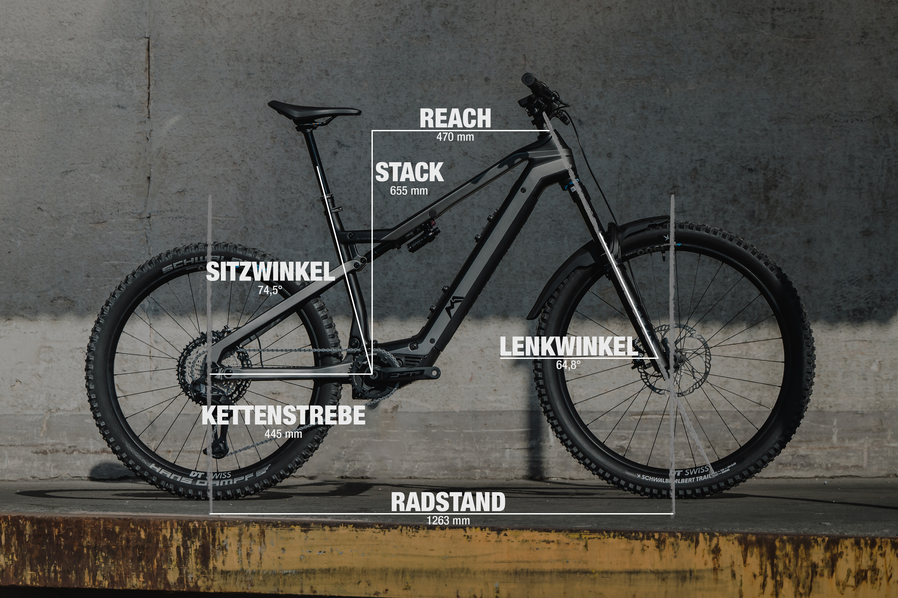 M1 AM.600.SX mit Geometrieangaben in Rahmengrösse L. im Album Vergleichstest Light-Support-E-MTB mit Bosch-SX – M1