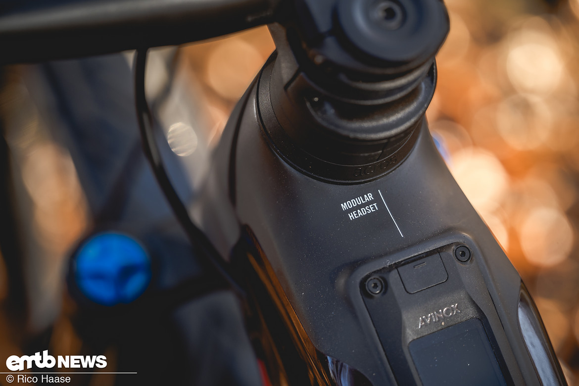 Modular Headset ermöglicht es mit einem Reach- und Winkelsteuersatz die Geometrie in gewissem Umfang anzupassen. im Album Vergleichstest DJI-E-Bikes – Rotwild R.X 900