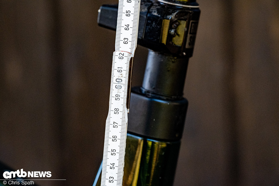 In der Theorie erlaubt die kurze Kurbel 15 mm mehr Drop – aber nur, wenn die maximale Einstecktiefe nicht im Weg steht.