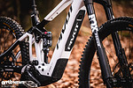 Am Unterrohr befinden sich Kunststoffprotektoren. Der Akku lässt sich nach unten aus dem Rahmen nehmen. im Album Pivot Shuttle LT – Neuvorstellung und Test
