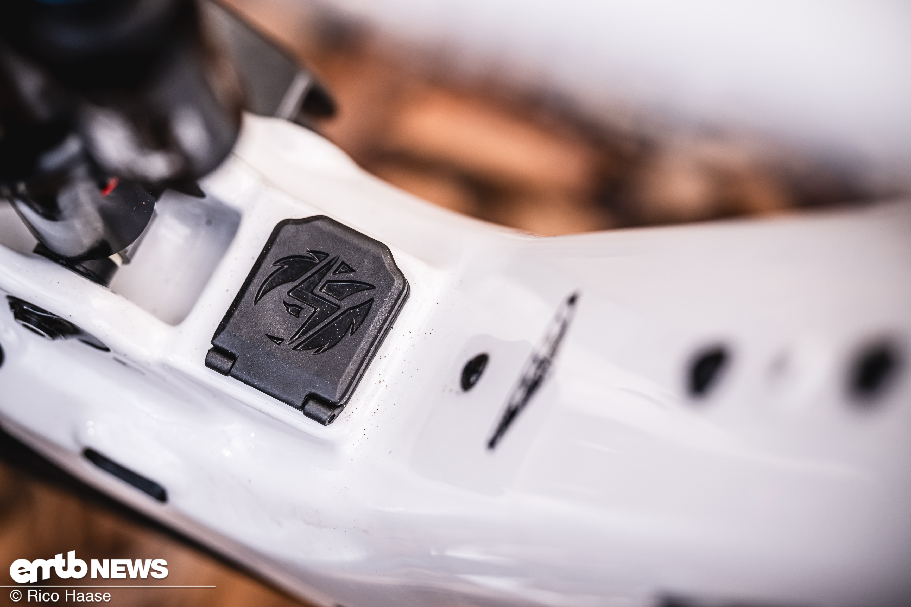Die Ladebuchse ist eine Eigenentwicklung von Pivot. Sie sitzt direkt über dem Motor und spart im vorderen Teil des Rahmens, nahe dem Steuerrohr, Gewicht. im Album Pivot Shuttle LT – Neuvorstellung und Test
