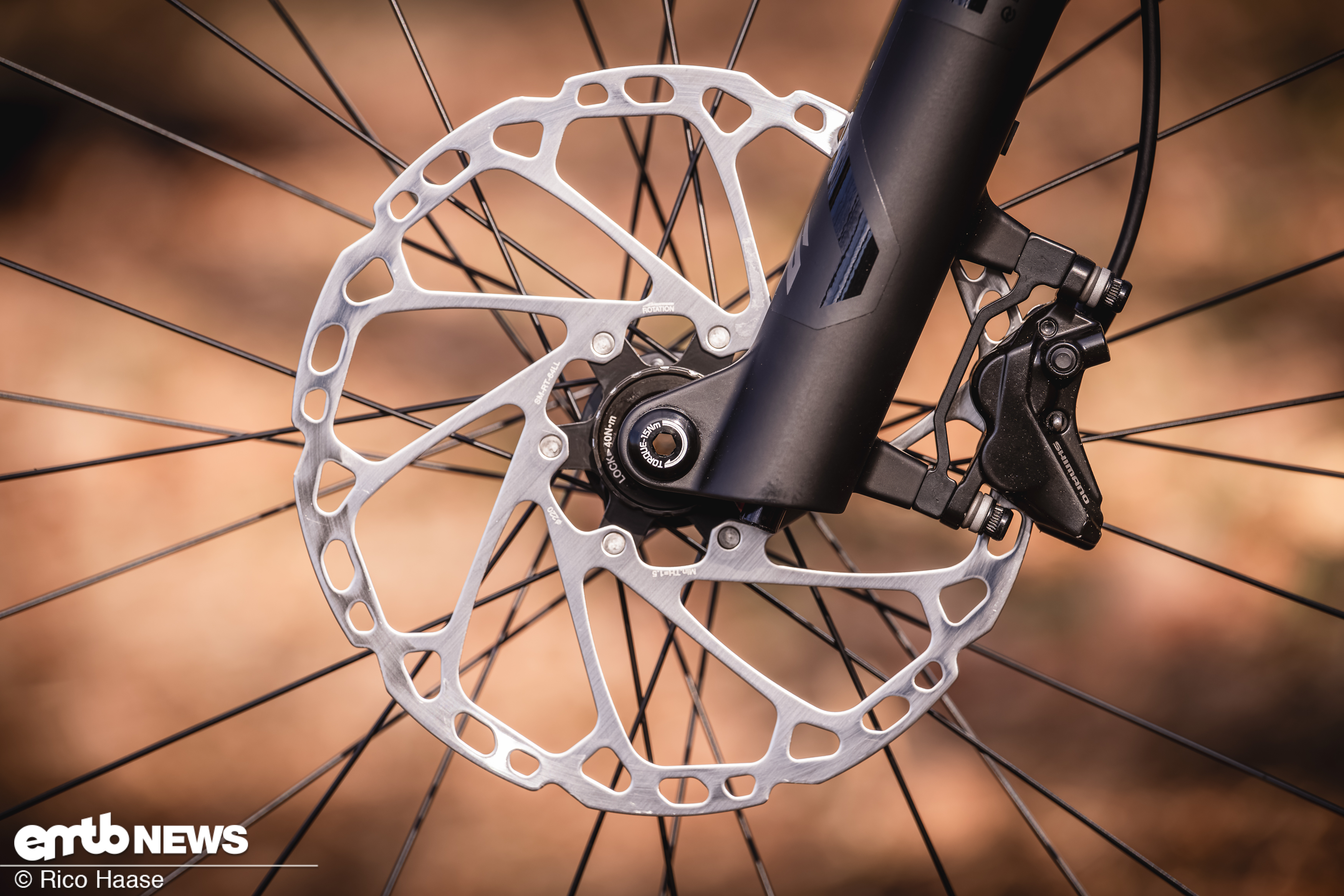 Dank 220er-Bremsscheibe packt die Bremse ordentlich zu. im Album Giant Stance E+ – Neuvorstellung und Test