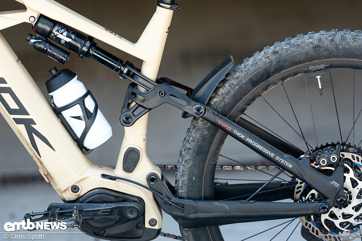 Der Hinterbau ist sowohl in der Kinematik-Abstimmung, als auch im Flex sehr gutmütig ausgelegt: In harten Kurven kann man schon provozieren, den Hinterreifen an die Sitzstreben zu drücken. im Album Marktübersicht Baller-E-Bikes